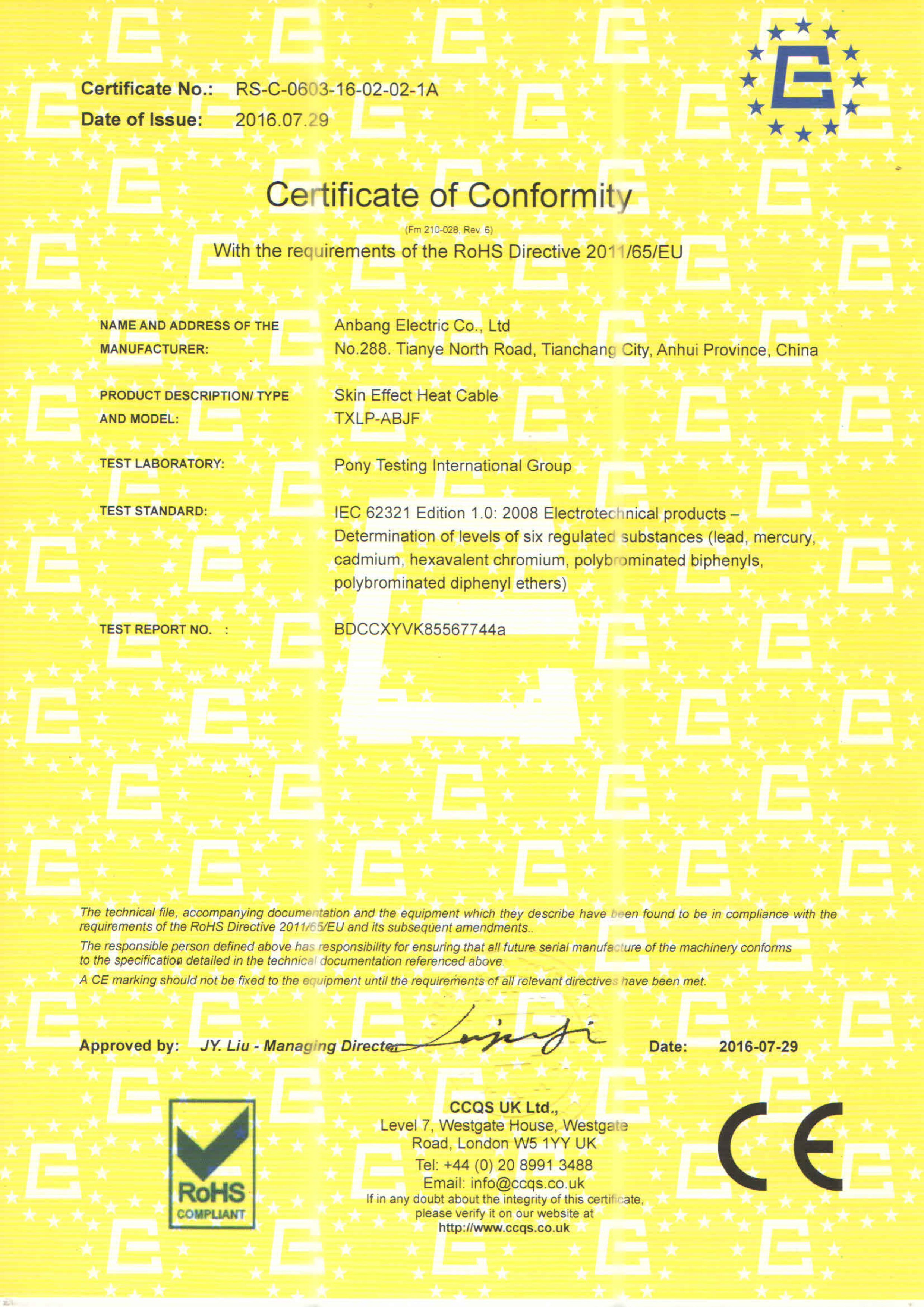 安邦電氣股份有限公司,總部位于北京市長安街,成立于2004年,注冊資金10088萬。安徽生產(chǎn)基地占地面積63000平方米,擁有66套各類生產(chǎn)線,其中進(jìn)口生產(chǎn)線6套。國家高新技術(shù)型企業(yè),滁州市市長質(zhì)量獎企業(yè),專精特新“小巨人”企業(yè),擁有國家知識產(chǎn)權(quán)局授權(quán)的45項專利,其中發(fā)明專利28項 , 主筆《太陽能熱利用自限溫電熱帶安裝規(guī)范》行業(yè)標(biāo)準(zhǔn),參編《自限溫電伴熱帶》國家標(biāo)準(zhǔn)、《工業(yè)和商業(yè)用電阻式伴熱系統(tǒng)》國家標(biāo)準(zhǔn)、《太陽能熱利用自限溫電熱帶》行業(yè)標(biāo)準(zhǔn)、《爆炸性環(huán)境 電阻式伴熱器》國家標(biāo)準(zhǔn)等7項國家標(biāo)準(zhǔn)。企業(yè)通過UL認(rèn)證,國家強制性 CCC產(chǎn)品認(rèn)證,ISO9001質(zhì)量管理體系認(rèn)證,ISO14001環(huán)境管理體系認(rèn)證,ISO45001職業(yè)健康安全管理體系認(rèn)證,Q/SHS0001.1健康、安全與環(huán)境管理體系認(rèn)證,歐盟防爆ATEX認(rèn)證,歐盟CE認(rèn)證,RoHS認(rèn)證,俄羅斯海關(guān)聯(lián)盟認(rèn)證,國家防爆電氣CCC證書。產(chǎn)品系列:集膚伴熱系統(tǒng)、電伴熱系統(tǒng)、電加熱器、電地暖系統(tǒng)、集儀器儀表、電線電纜、高低壓配電柜(箱)、電纜橋架、閥門管件等等設(shè)計、制造、銷售。產(chǎn)品應(yīng)用于航天航空、軍工、石油、石化、天然氣、機場、化工、鋼鐵、隧道、消防、養(yǎng)殖、融雪化冰、室內(nèi)供暖、國家電網(wǎng)及眾多電廠等等國家重點工程。出口美國、英國、德國、俄羅斯、韓國、日本、哈薩克斯坦、烏克蘭、伊朗等眾多國家。